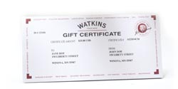 The Watkins Gift Certificate makes the perfect gift for everyone. The Gift Certificate is available in whole dollar amounts from $10.00 to $100.00.